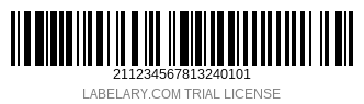 EAN-13 | ean13 | Linear | No | No | Pattern: [0-9]{12}(-[0-9]{2,5})? (with or without add-on) |